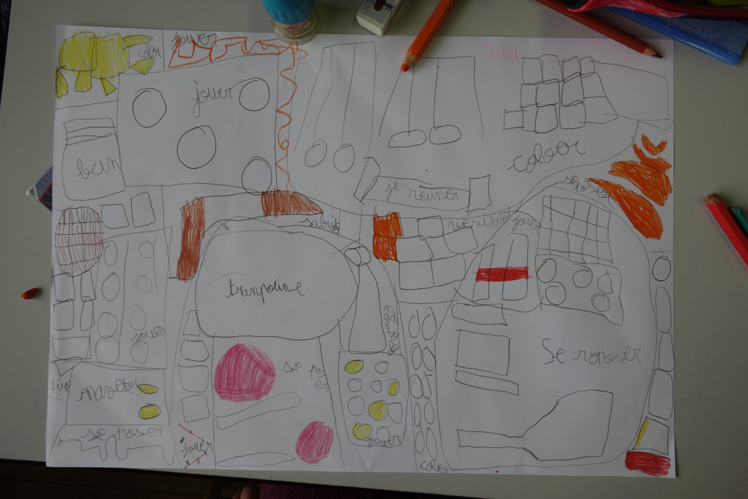 2 ateliers avec les écoliers / 2 ateliers avec les habitants / 1 atelier avec les jeunes de la maison d’Enfants / 1 atelier avec les salariés de la maison d’Enfants / 1 atelier micro-trottoir avec les parents d’élèves`